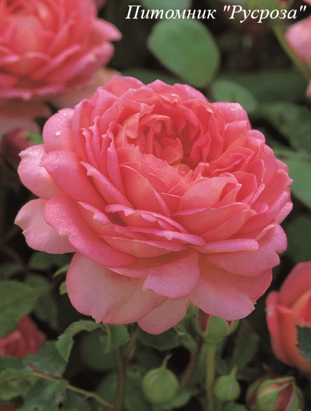 Цветок: нежно-розовый с кремовым центром и золотистым налетом на обратной стороне лепестка, розетковидный, густомахровый, 50 - 100 лепестков в одном цветке, диаметр цветка 10 - 12 см, обладает насыщенным фруктовым ароматом с нотками свежего лимона и малины, долго сохраняет форму, пригоден для срезки.