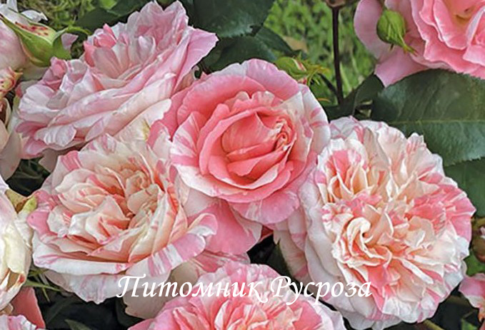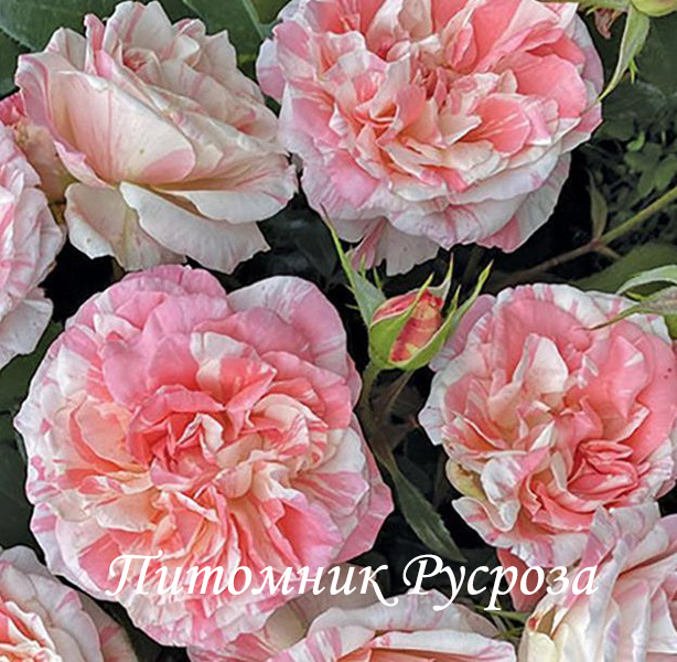 Цветок: кремово-белый с розовыми штрихами, пятнами и полосками, чашевидный, густомахровый, 70 - 90 лепестков в одном цветке, диаметр цветка 7 - 9 см, обладает насыщенным ароматом.