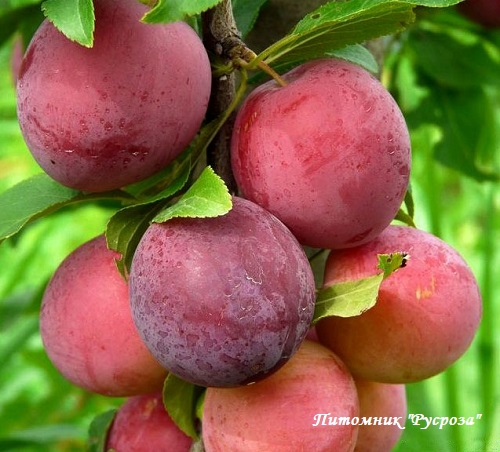Плоды: крупные (30 г), яйцевидной формы. Кожица темно-красная с многочисленными, крупными, хорошо заметными, подкожными точками. Косточка средней величины, полусросшаяся с мякотью. Мякоть оранжевая, волокнистая, среднеплотная, малосочная.