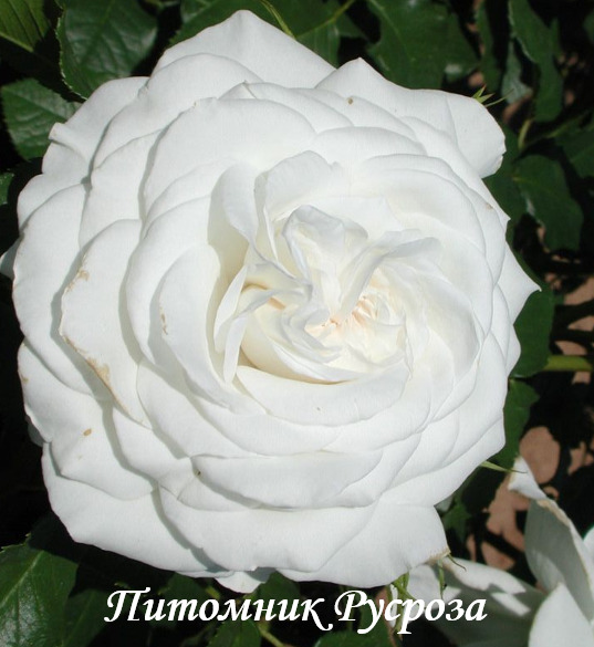 Цветок: чисто белый, чашевидный, с высоким центром, махровый, 15 - 25 лепестков в одном цветке, диаметр цветка 8 - 10 см, обладает насыщенным медовым ароматом с нотками чая, устойчив к дождю.
