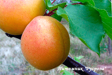 Плоды: средней массой 25 гр., округлые, с желто-оранжевой основной и красно-розовой покровной окраской, со слабым опушением. Мякоть оранжевая, нежная, сочная. В плодах содержится: сухого вещества 17,8%, сахара 8,5%, кислоты 1,7%.