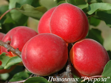 Плоды: крупные (80 - 100 г), правильной грушевидной формы. При созревании приобретают красно-оранжевый цвет, с насыщенным румянцем. Мякоть плотная, оранжевая, сочная и ароматная.