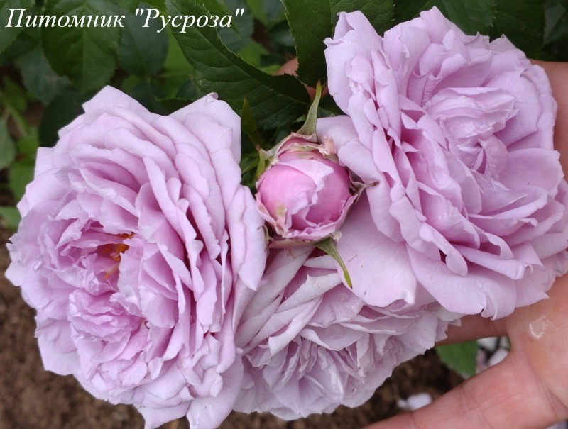 Цветок: сиреневый с розовым оттенком, розетковидный, густомахровый, 40 - 60 лепестков в одном цветке, диаметр цветка 8 - 10 см, обладает ароматом старой розы с нотками дамасской.