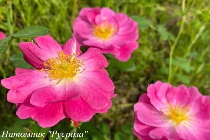 Цветок: темно-розовый до нежно розового с белыми штрихами у основания лепестка и желтыми тычинками, плоскочашевидный, полумахровый, 10 - 16 лепестков в одном цветке, диаметр цветка 7 - 10 см, обладает насыщенным ароматом с пряными нотками, привлекательный для пчел и шмелей, устойчив к неблагоприятным погодным условиям (солнце, дождь, ветер).