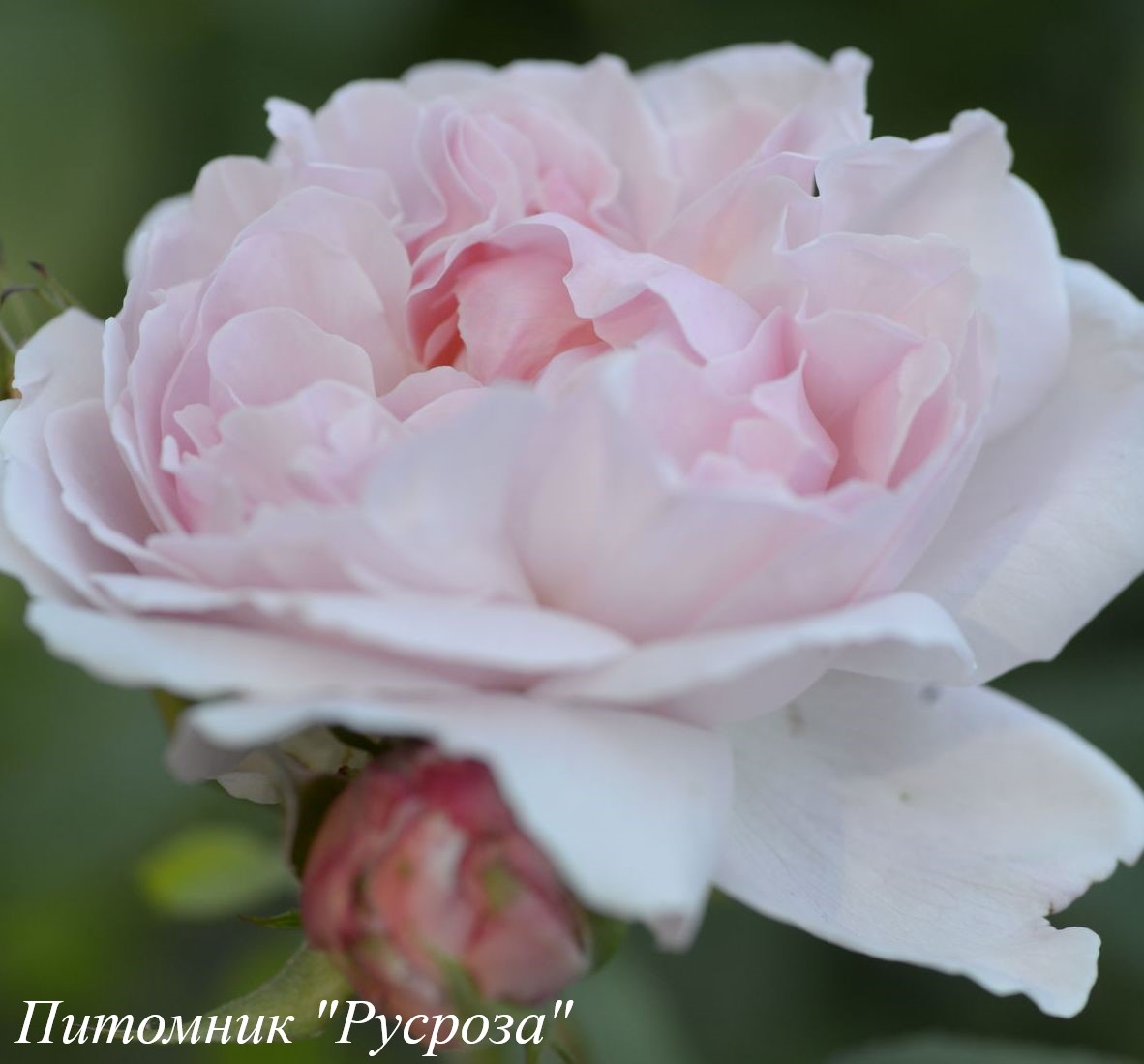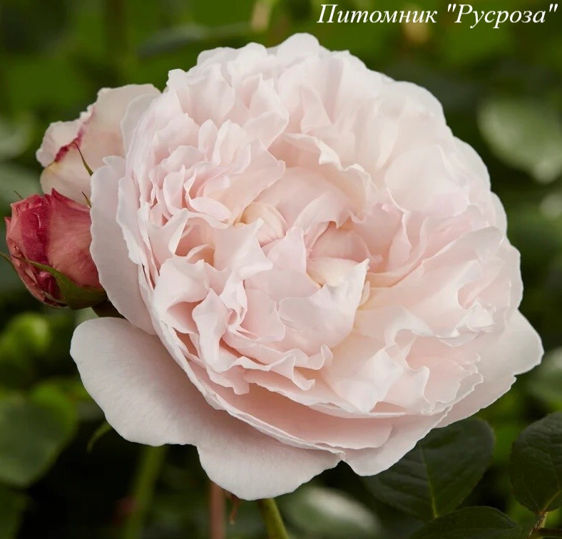 Цветок: нежно розовый до бело-кремового, розетковидный до квадратного, густомахровый, 70 - 110 лепестков в одном цветке, диаметр цветка 6 - 8 см, обладает насыщенным сладким ароматом.