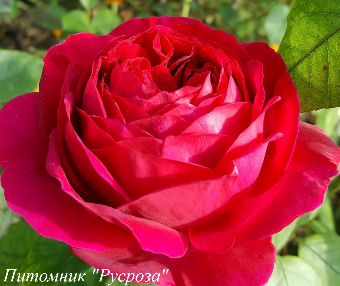 Цветок: темно-красный до ярко красного с малиновым оттенком, шаровидный до розетковидного, очень густомахровый, 100 - 120 лепестков в одном цветке, диаметр цветка 10 - 12 см, обладает насыщенным ароматом старой розы с нотками чая и кедра, долго сохраняет форму, пригоден для срезки.