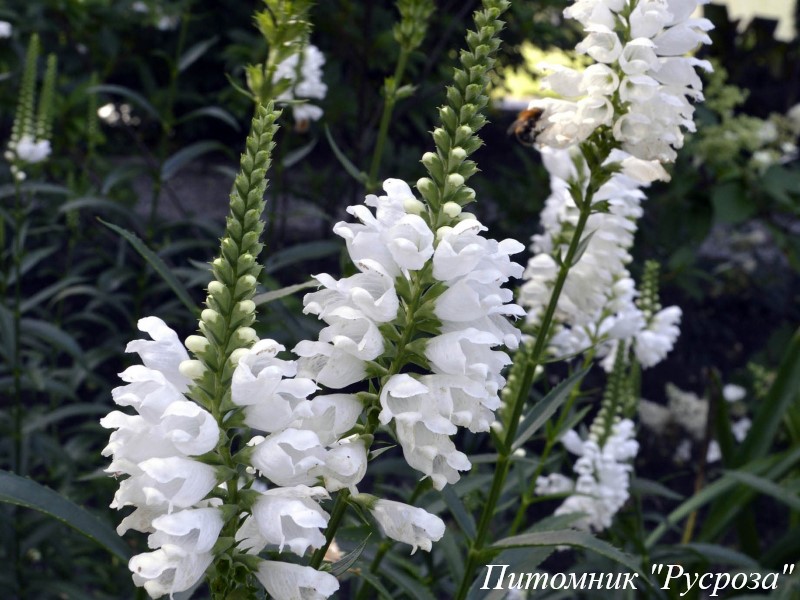 Цветение: в июле - августе. Соцветия колосовидные, до 30 см длиной, состоящие из белых двугубых, трубчатых цветов.