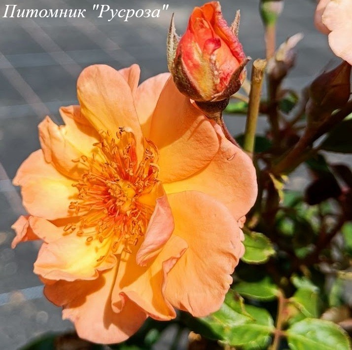 Цветок: абрикосово-оранжевый с медово-желтым основанием лепестка, плоскочашевидный, полумахровый, 9 - 16 лепестков в одном цветке, диаметр цветка 4 - 6 см, обладает легким ароматом, самоочищающийся, привлекательный для пчел и шмелей, долго сохраняет форму.
