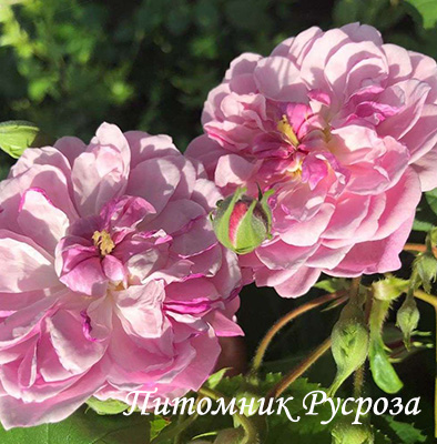 Цветок: нежно-розовый до фиолетового с желтым оттенком, розетковидный, густомахровый, 40 - 60 лепестков в одном цветке, диаметр цветка 3 - 6 см, обладает насыщенным ароматом с нотками сливок.
