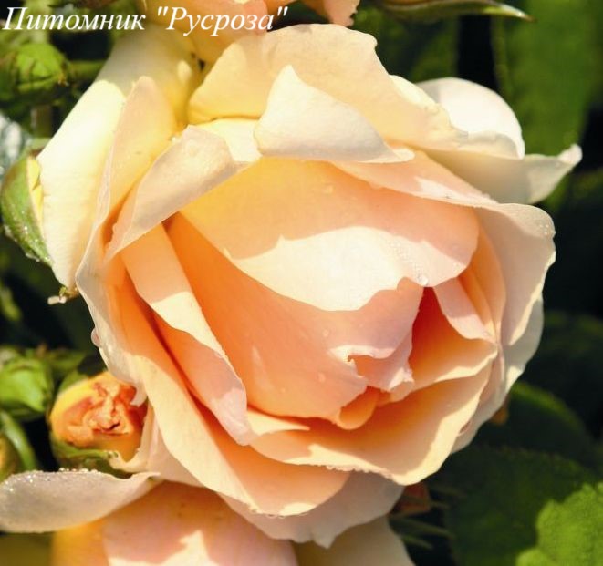 Цветок: нежно-янтарно-абрикосовый, чашевидный, махровый, 26 - 40 лепестков в одном цветке, диаметр цветка 7 - 10 см, обладает легким пряным ароматом с нотками лимона и меда.