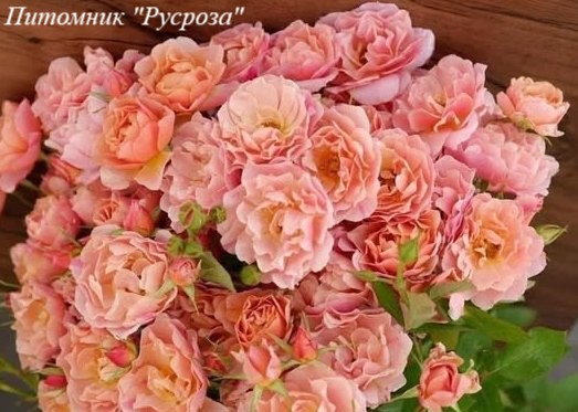 Цветок: пепельно-розовый антикварный с красновато-коралловым оттенком и карамельно-медовым центром, чашевидный до плоскочашевидного с волнистым краем лепестка, махровый, 17 - 30 лепестков в одном цветке, диаметр цветка 5 - 8 см, обладает легким ароматом, очень долго сохраняет форму, пригоден для срезки.