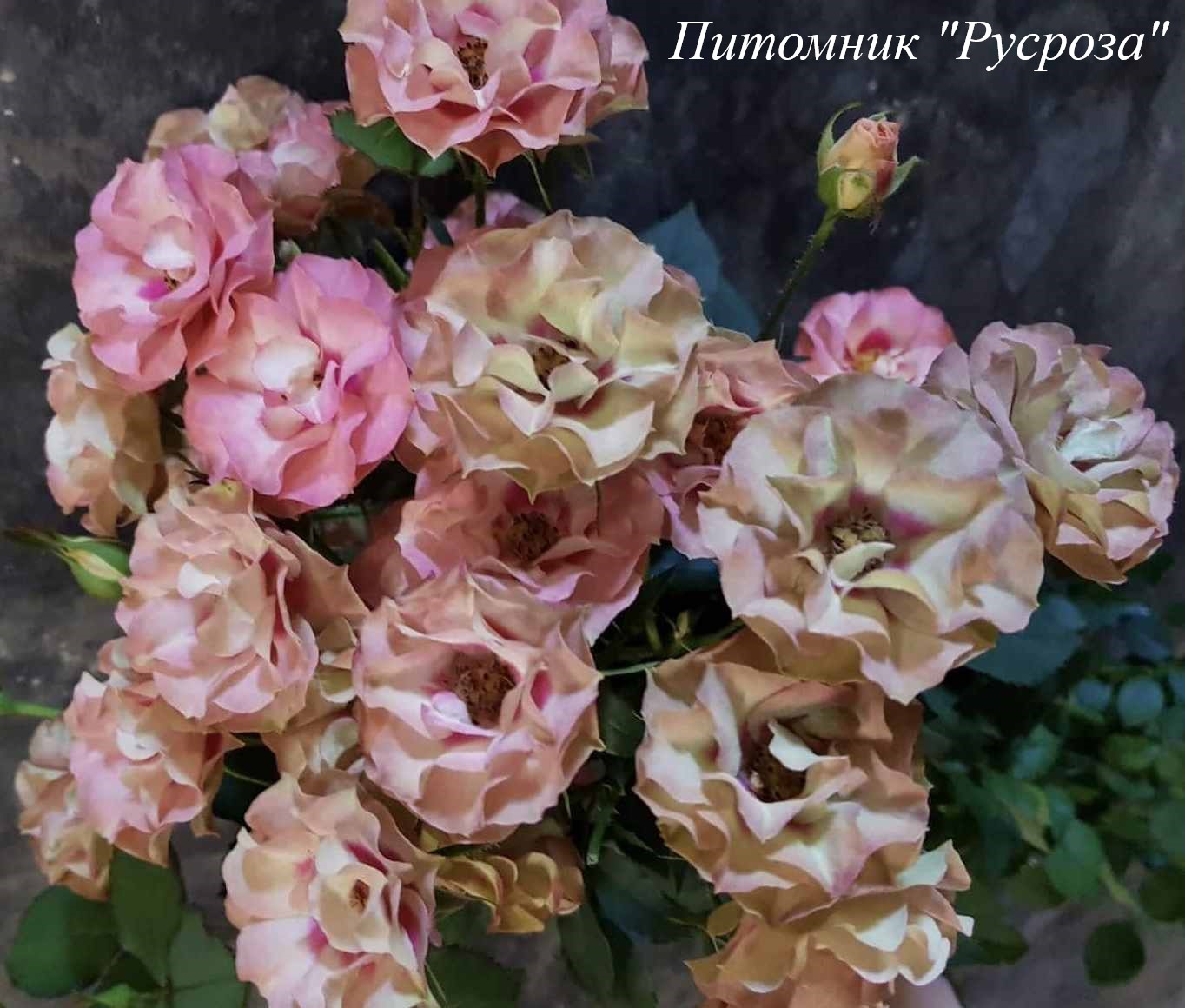 Цветок: розово-коралловый с сиреневым оттенком, бордовым центром и медно-янтарной обратной стороной лепестка, при полном распускании становится античным зеленовато-рлзовым с бронзовым оттенком, чашевидный до плоскочашевидного с волнистым краем лепестка, махровый, 20 - 30 лепестков в одном цветке, диаметр цветка 5 - 6 см, без аромата.