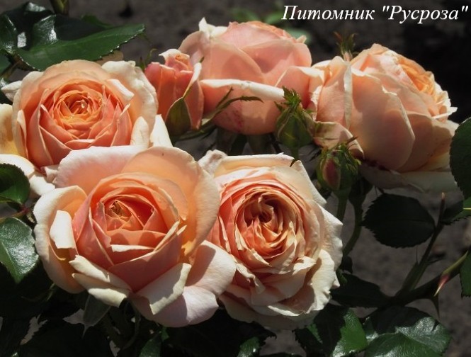 Цветок: абрикосово-оранжевый с желтым оттенком и кремовыми внешними лепестками до кремово-абрикосового при полном распускании, шаровидный до чашевидного, густомахровый, 40 - 60 лепестков в одном цветке, диаметр цветка 7 - 9 см, обладает легким фруктовым ароматом с нотками лимона, малины и спелого яблока, долго сохраняет форму, пригоден для срезки, устойчив к неблагоприятным погодным условиям (солнце, дождь, ветер).