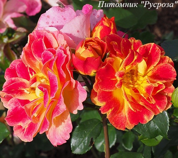 Бутон: оранжево-желтый с малиново-красными мазками и полосками, яйцевидный.