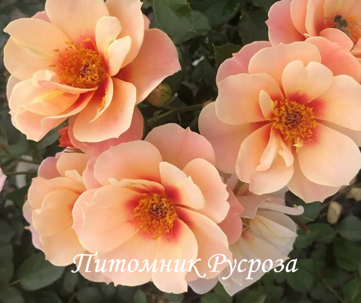 Цветок: абрикосовый до кораллово-персикового с розово-оранжевым напылением на внешних лепестках, ярко красным глазком и золотистыми тычинками, плоскочашевидный, полумахровый, 8 - 15 лепестков в одном цветке, диаметр цветка 5 - 7 см, обладает очень лёгким ароматом, привлекательный для пчел и шмелей.