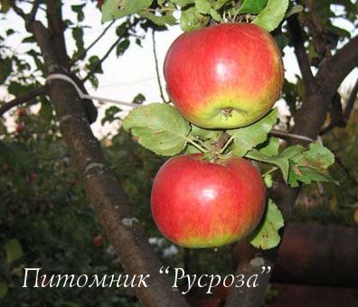 Плоды: крупные и очень крупные (120 - 350 г), одномерные, плоско-округлые или округлые, иногда с широкими ребрами. Поверхность плода часто слабобугристая, иногда встречаются оржавленные бугорки. Кожица блестящая, прочная, маслянистая. Основная окраска желтоватая, покровная – интенсивный красно-полосатый, расплывшийся румянец, иногда занимающий почти весь плод. Мякоть кремовая, крупнозернистая, нежная.