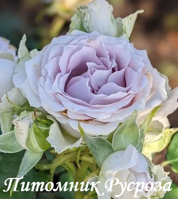 Цветок: сиренево-фиолетовый с красноватым оттенком, чашевидный с волнистым краем лепестка, густомахровый, 80 - 100 лепестков в одном цветке, диаметр цветка 7 - 10 см, обладает насыщенным цитрусовым ароматом, устойчив к дождю.