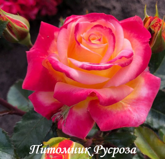 Бутон: желтый с малиново-красной каймой по краю лепестка, яйцевидный.