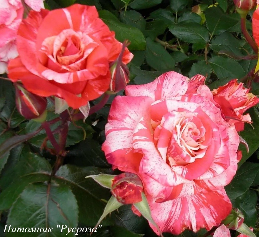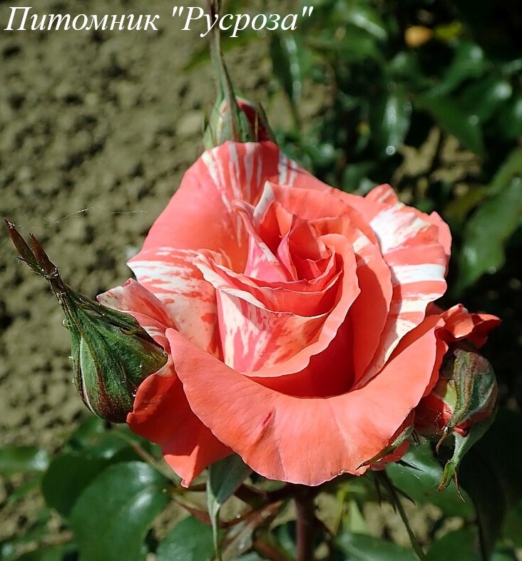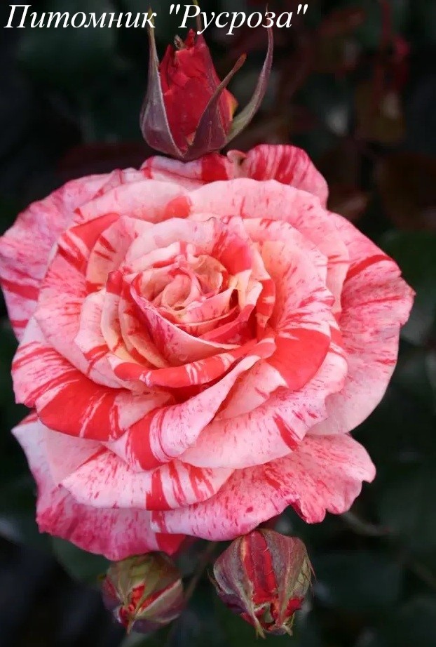 Бутон: красно- розовый с кремово-белыми штрихами и полосками, бокаловидный.