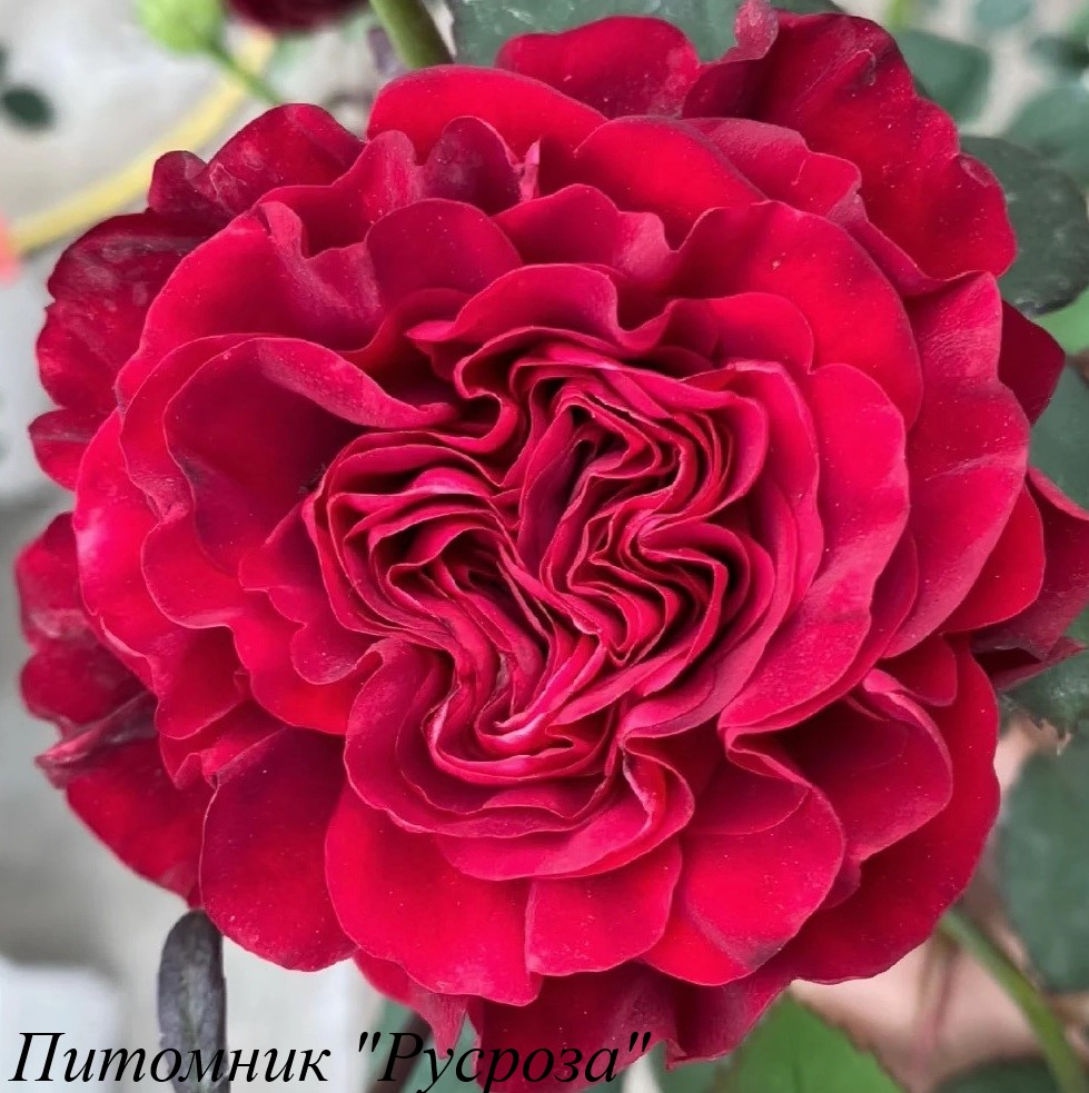 Цветок: красный с волнистым краем лепестка, чашевидный, с высоким центром, густомахровый, 40 - 50 лепестков в одном цветке, диаметр цветка 9 - 12 см, обладает легким ароматом, долго сохраняет форму, пригоден для срезки.