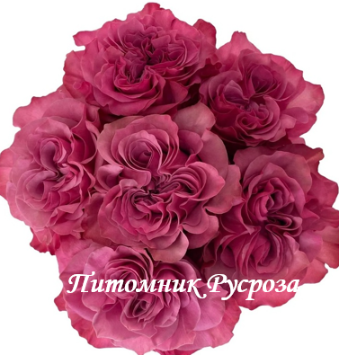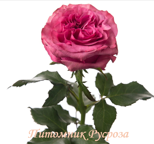 Цветок: ярко розовый бархатистый с сиреневым оттенком и перламутрово-розовым напылением, розетковидный до квадратного с волнистым краем закручивающегося в центр лепестка, густомахровый, 80 - 100 лепестков в одном цветке, диаметр цветка 8 - 10 см, обладает лёгким ароматом, долго сохраняет форму, пригоден для срезки.
