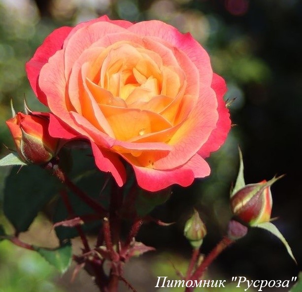Бутон: красный с абрикосово-желтыми штрихами и полосками, яйцевидный.