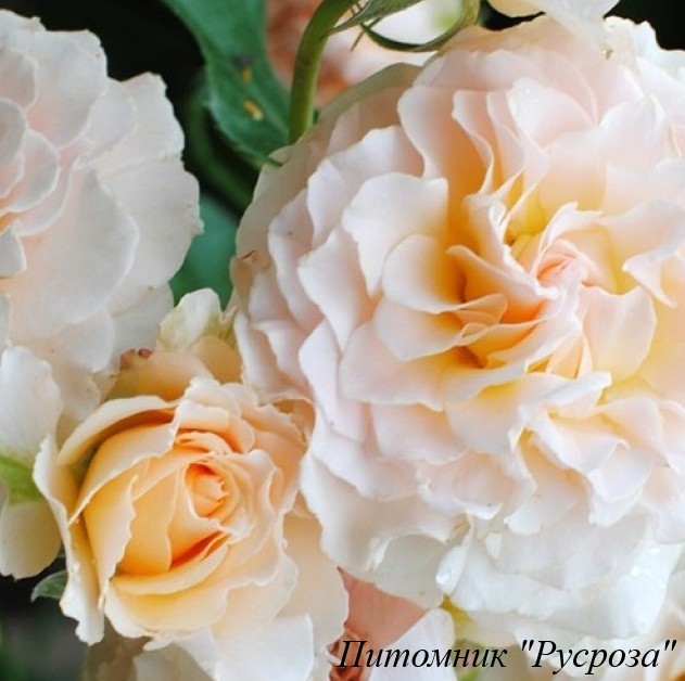 Цветок: белый с нежно кремово-абрикосовым центром и зеленоватыми внешними лепестками, чашевидный до розетковидного, густомахровый, 80 - 100 лепестков в одном цветке, диаметр цветка 9 - 11 см, обладает насыщенным медовым ароматом, долго сохраняет форму, пригоден для срезки.